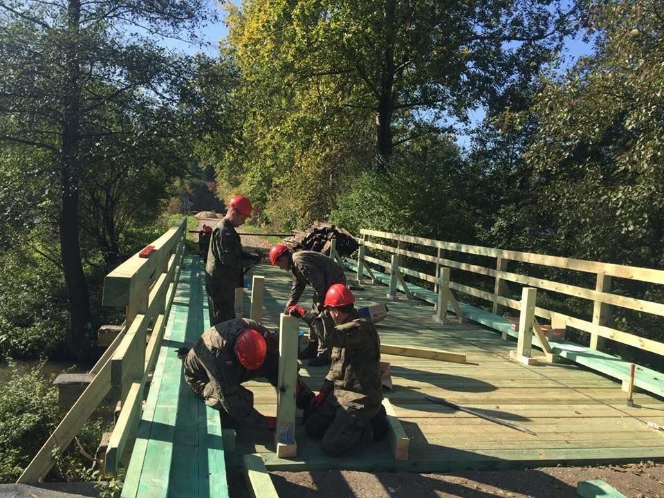 Poniżej zdjęcia mostu w stanie obecnym oraz z prac remontowych w 2018r.